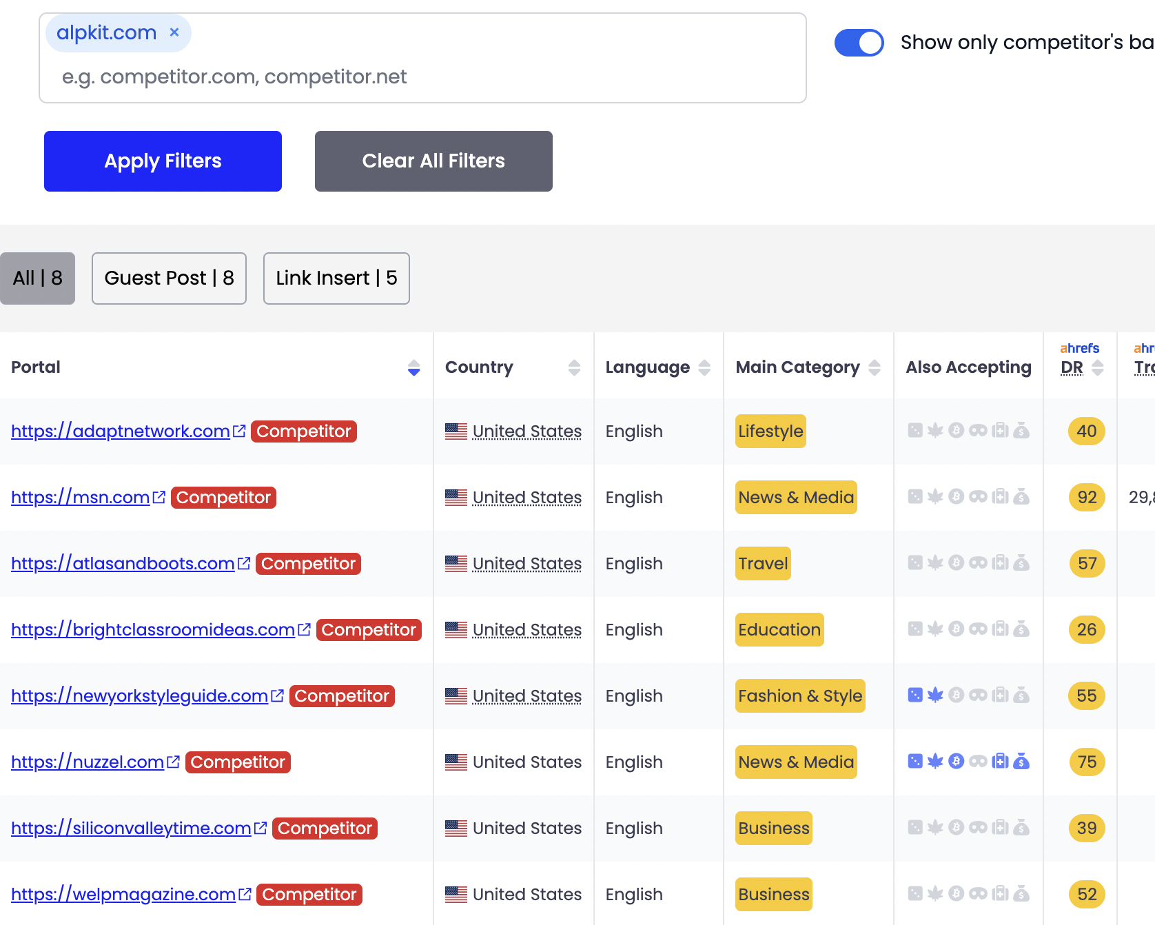 This would save you countless hours of reverse engineering competitors and God knows how much outreach, all while guaranteeing that you get a link from these blogs.