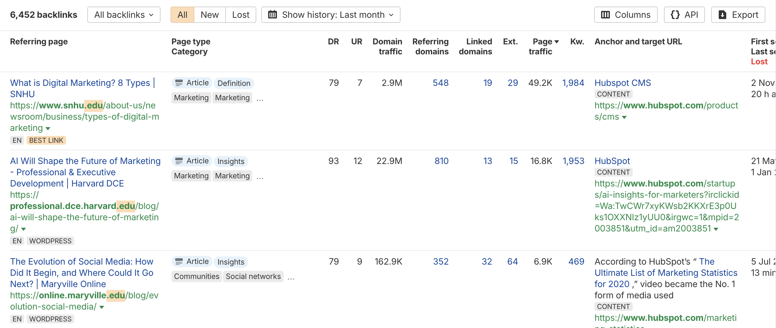 Here’s a good example where HubSpot managed to get 3 links from the University of San Diego just from a guide on YouTube, Facebook, and Instagram marketing.