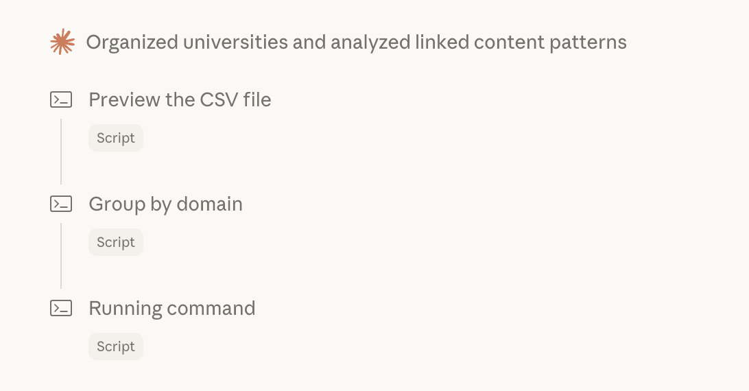 Export the keyword data to a spreadsheet and filter using AI. See which institutions give out the most links and what type of content they look for.