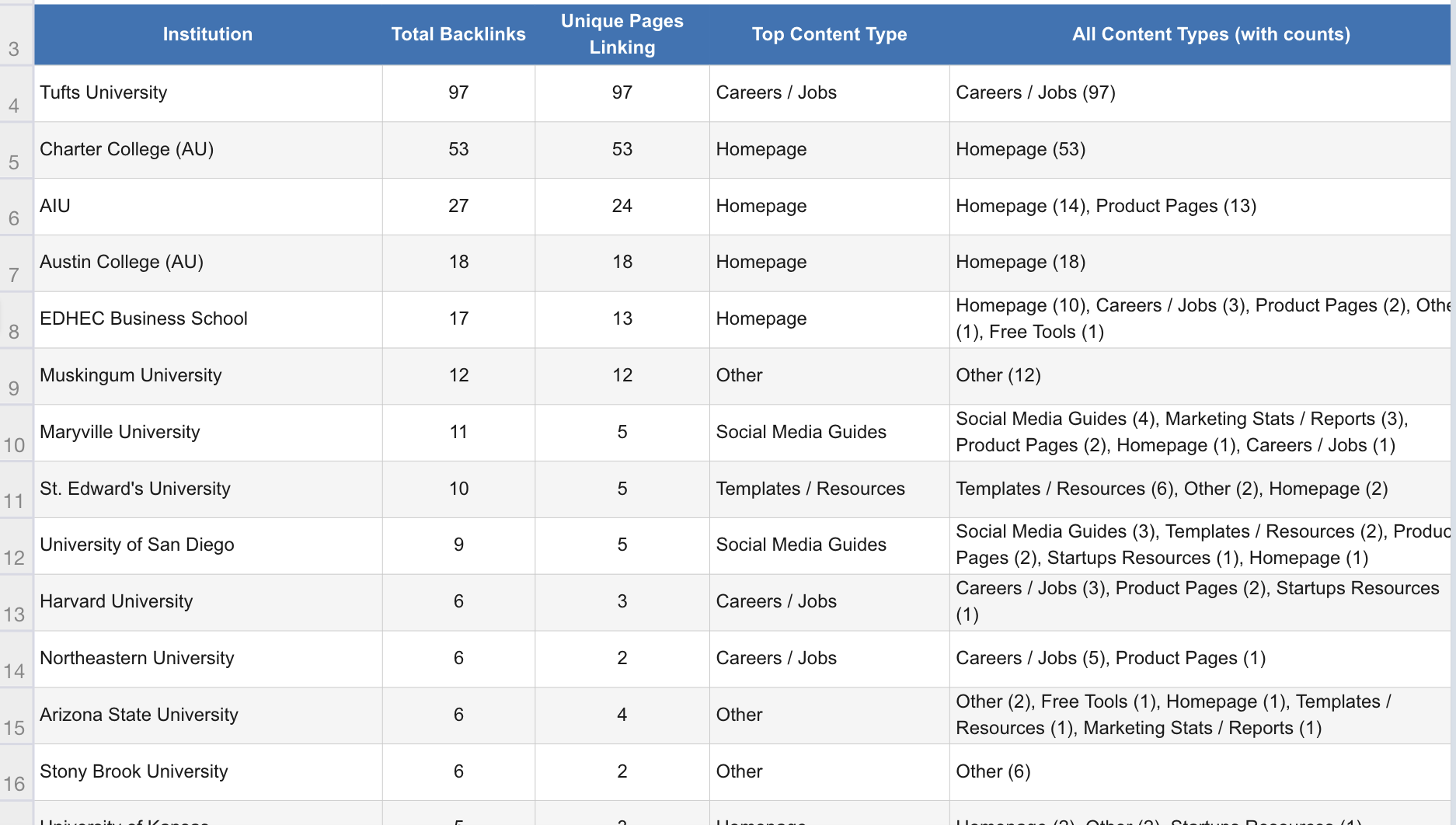 Educational resources are anything a student could use to get a job, learn a skill, or improve their lives during or after university. Whenever you create a valuable resource like a career guide, template, or fact sheet, you’re creating a linkable asset that a school can give its students that makes them look better (and justifies the $100,000/year tuition somehow…).