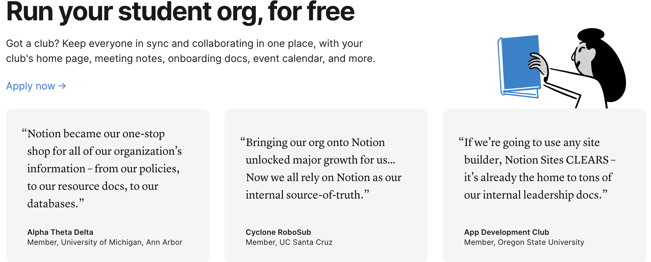Last up, offer student discounts on either your products or tools. Actually, if you’re a SaaS tool, I recommend having a free student plan like Notion does (I’ll get to that in a second).