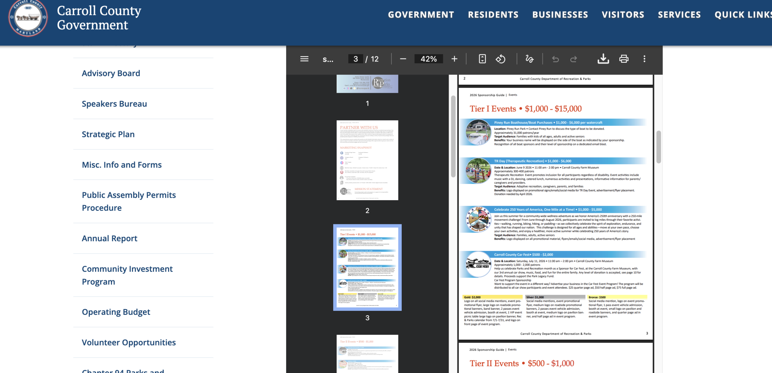 This is how I found Carroll County, Maryland, in about 10 seconds. They shamelessly have their prices right on their page: