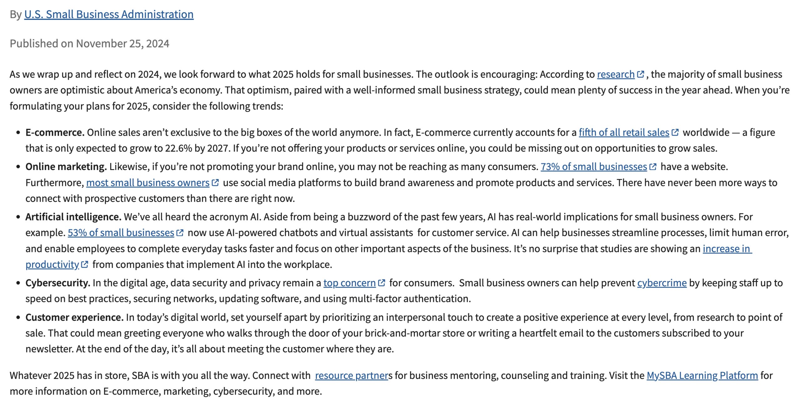 Government sites like the Small Business Administration link out to external sources when they publish content.