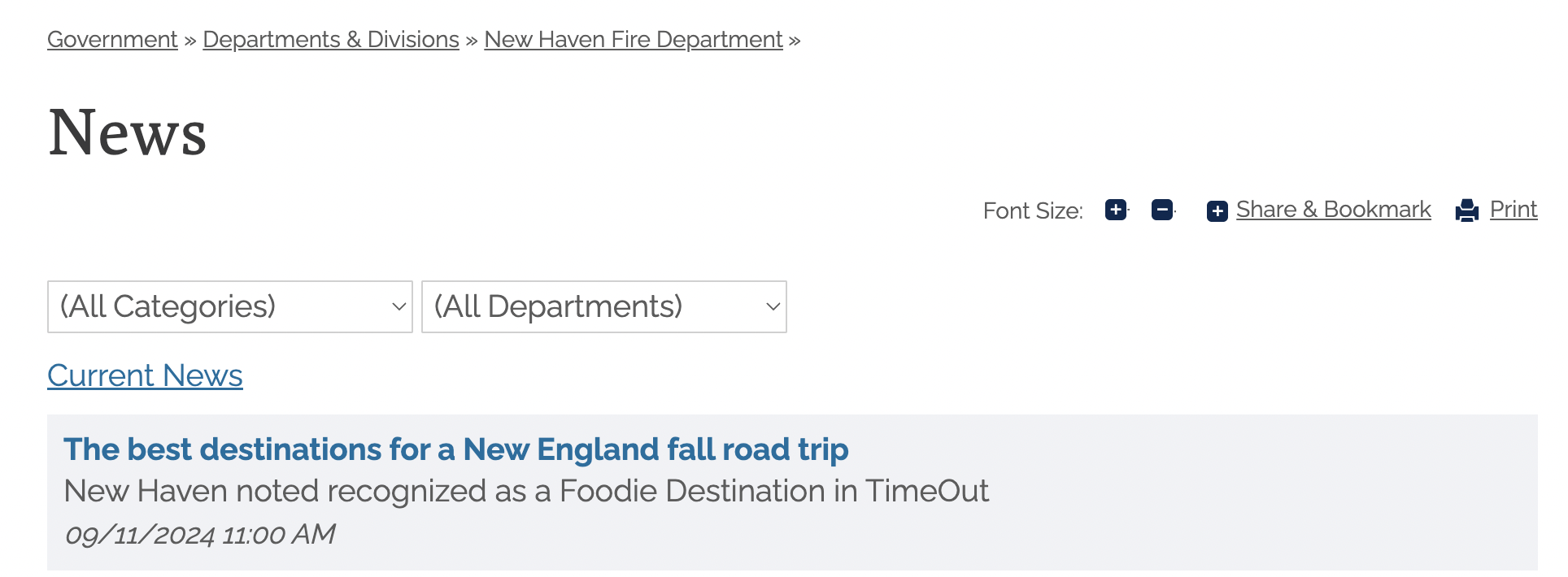 LifeHack: Type in site:.gov “news” and see which city governments run their own blogs. Here is an example from the city of New Haven, Connecticut: