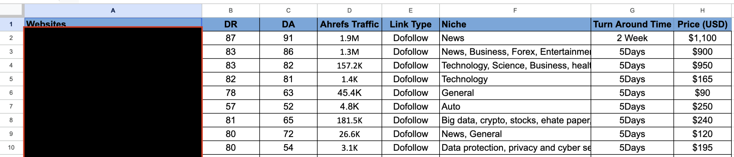- Find relevant agencies: One last thing: try to build relevant backlinks. High domain authority links are great, but the more relevant they are to your website, the better. You can use AI to list .govs, divide them by category, and then create a spreadsheet. For more guidance, read my guide on how to choose the right sites to buy links from.