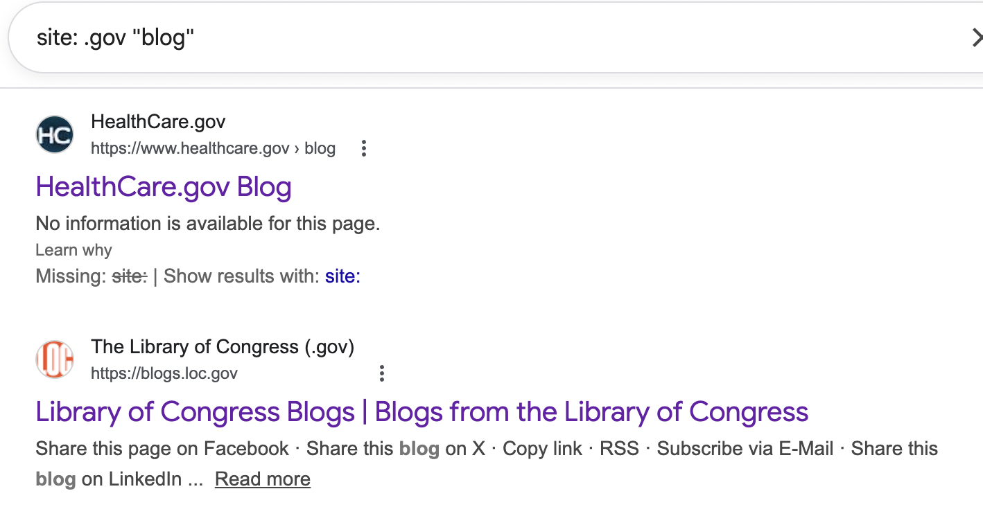 But if you keep scrolling, you’ll find government agencies with blogs that have much lower barriers to entry. I found this in 5 seconds: