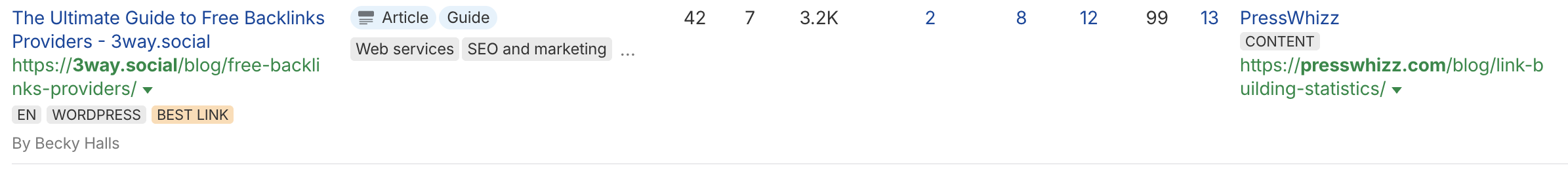 By the way, PressWhizz shows you all of these at a glance (don’t ask how much we pay per month for access to this. I don’t want to write it).