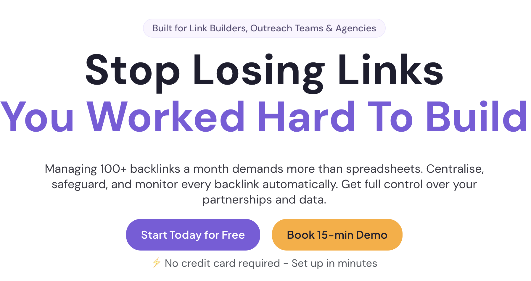 BacklinkCRM is a tool for managing hundreds or even thousands of backlinks at scale. It lets you centralize, monitor, and safeguard all of your backlinks in one place, which eliminates spreadsheets and makes your life 10x easier.