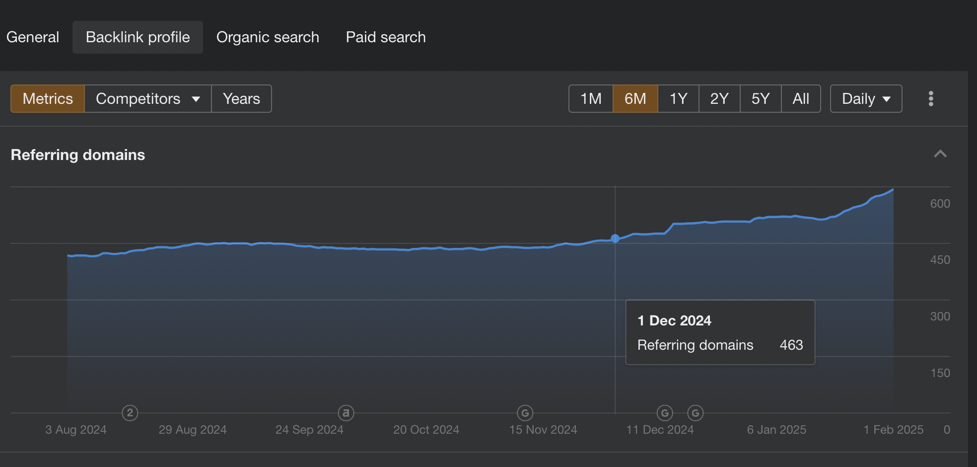 In the following image, you see how quickly we are able to scale up links for clients. And all of these links are safe, high quality referring domains.