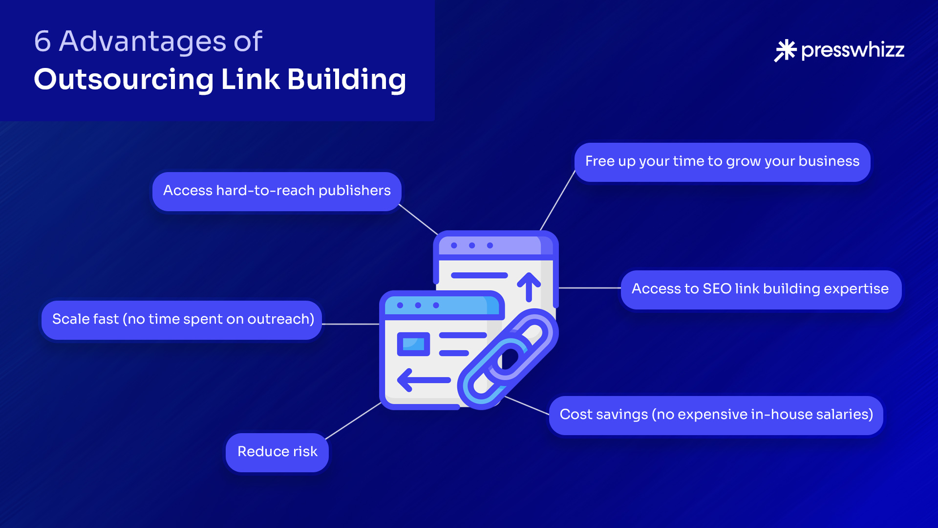 Some of the main advantages of outsourcing link acquisition are immediate access to network connections, fast turnaround times, and lower costs. Here’s a bit more on each of these advantages: